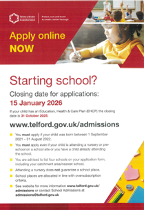 - More information is available at www.telford.gov.uk/admissions regarding school allocations and oversubscription criteria.